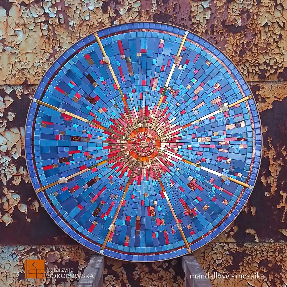 Mandala MIRACOLO w technice mozaiki ceramika ręcznie szkliwiona i wypalana w piecu ceramicznym, szkło weneckie Orsoni Venezia 1888, kamienie szlachetne, ceramika pokryta 24 karatowym złotem do powieszenia